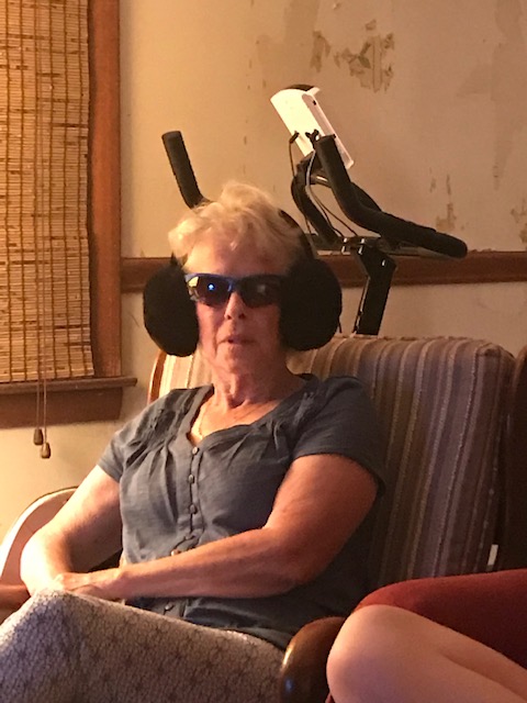 Over the years, the boys have engaged in this activity regardless of setting. This summer we were at my mother in law’s for a quick weekend stop over. John pulls Grandma’s ear muffs off the stationery bike and puts them on Granny. (We will not discuss why the ear muffs were out in July.) Then he steps back and evaluates the look. It was decided he needed to add a little something more – sunglasses. I know what you are thinking, “Thank goodness he added the glasses!”